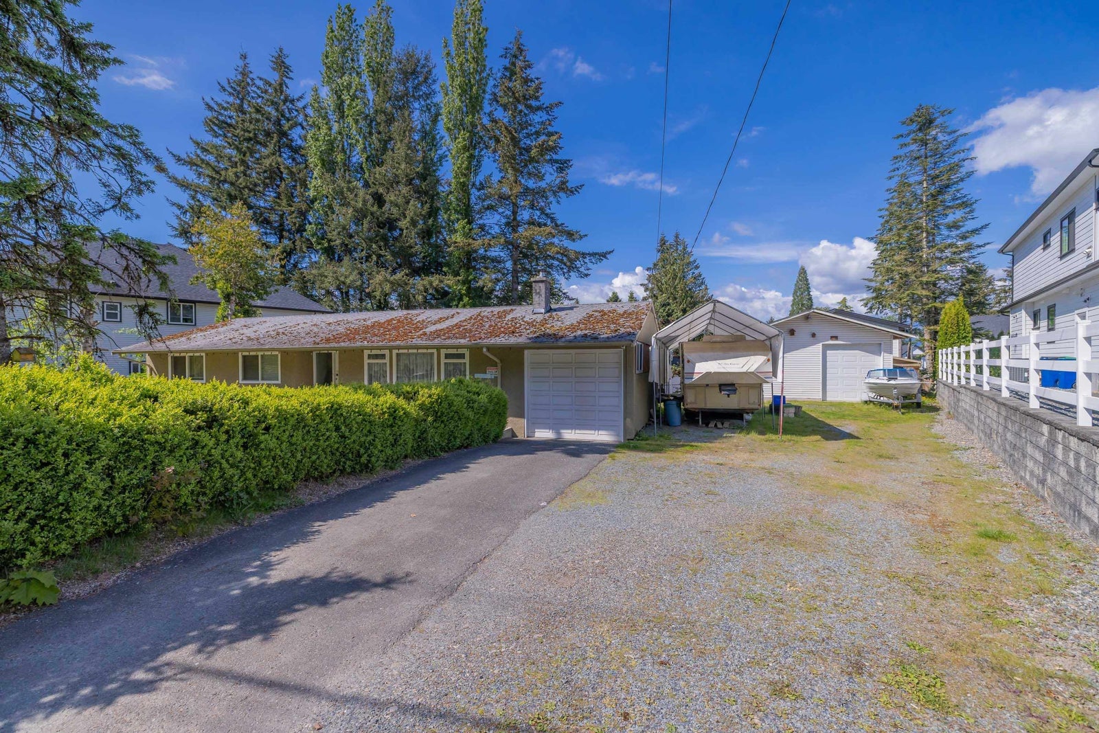 Incredible opportunity to BUILD YOUR DREAM HOME on this 0.31-acre lot! Zoning permits two dwellings—buyers to verify all details with the Township. Existing 3-bed, 1-bath rancher offers potential for renovation or redevelopment. Includes large workshop and storage shed. Conveniently located near Brookswood, Murrayville, and Willowbrook amenities. Here's your chance to create something special in a prime area!