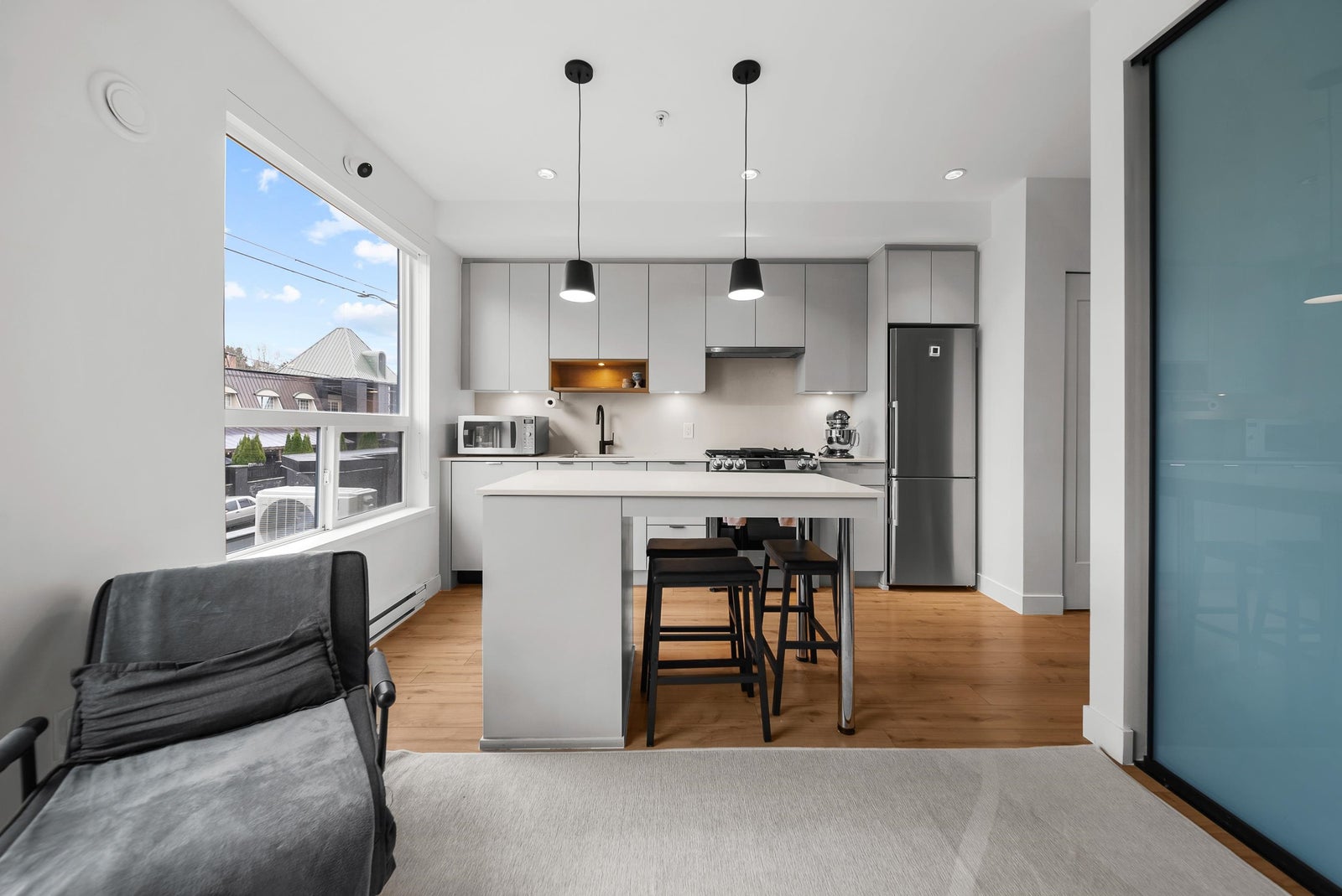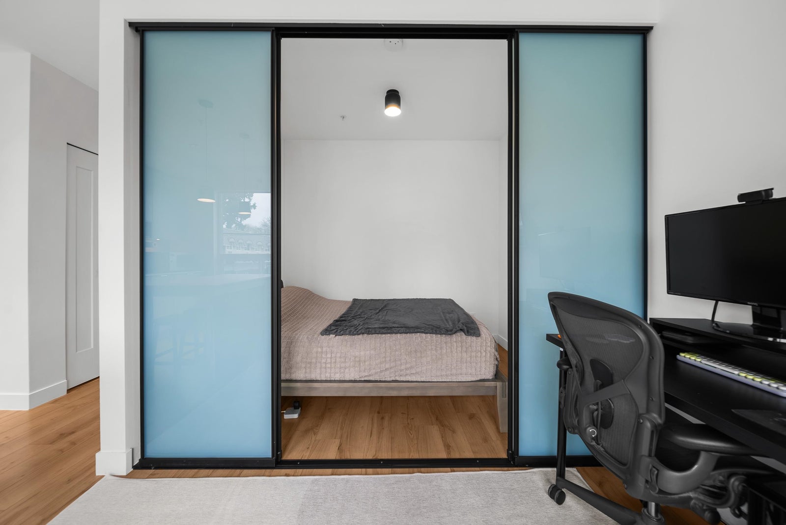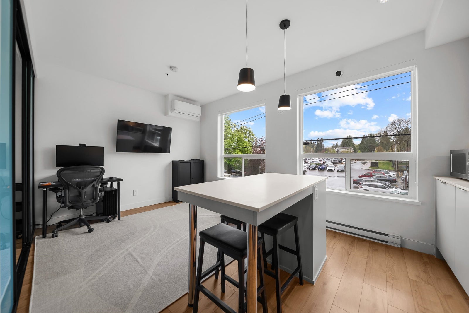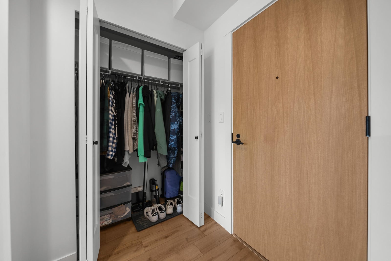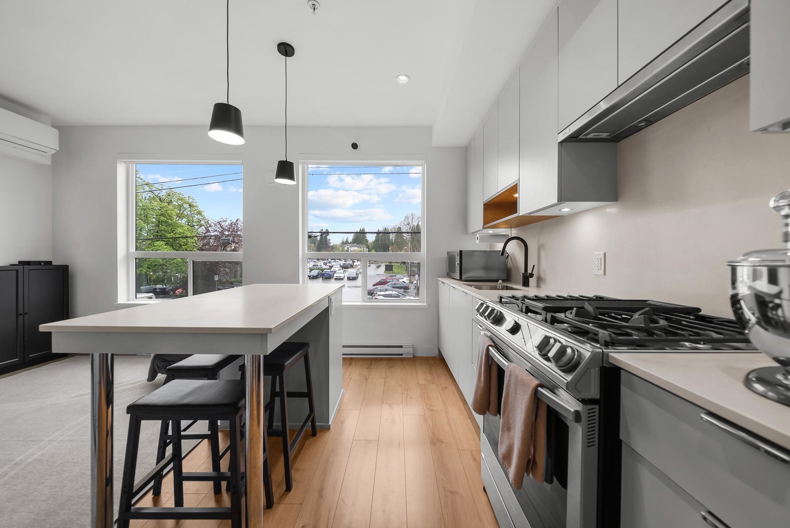 Welcome to Upper Montrose at 2493 Montrose Ave in historic downtown Abbotsford! This modern junior 1-bedroom features wide plank flooring, contemporary cabinetry, quartz countertops, and a premium appliance package with gas range. Functional layout with sliding glass wall for bedroom privacy, stunning 4-piece bath, barn door detail, and built-in split A/C. Includes in-suite laundry, storage, 1 underground parking stall, and storage locker. Enjoy a vibrant, walkable lifestyle just steps to Old Yale Brewing, cafes, boutiques, restaurants, and the farmers market. Building offers courtyard and playground area. Easy access to Hwy 1 and UFV. Open house May 2 1-3pm