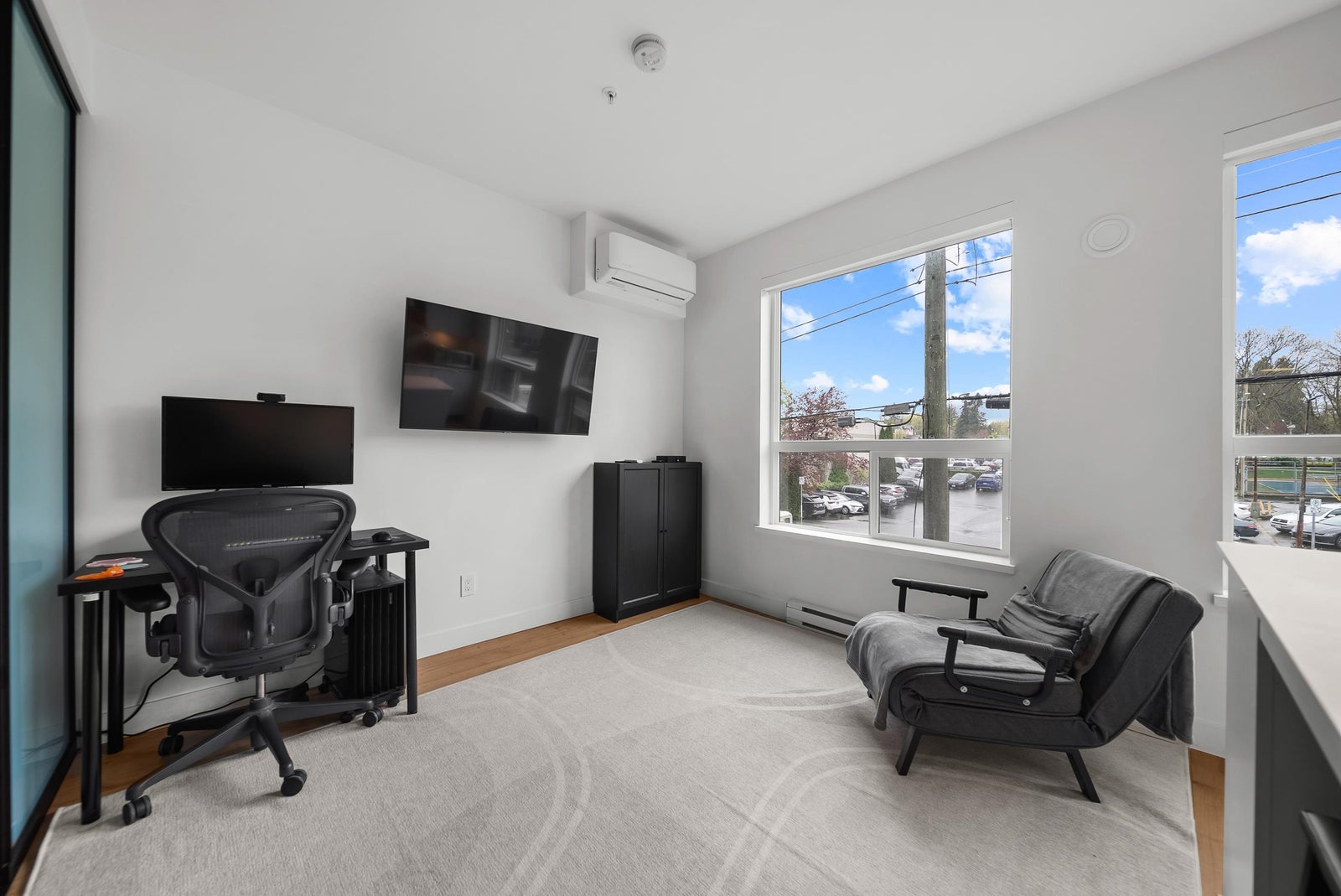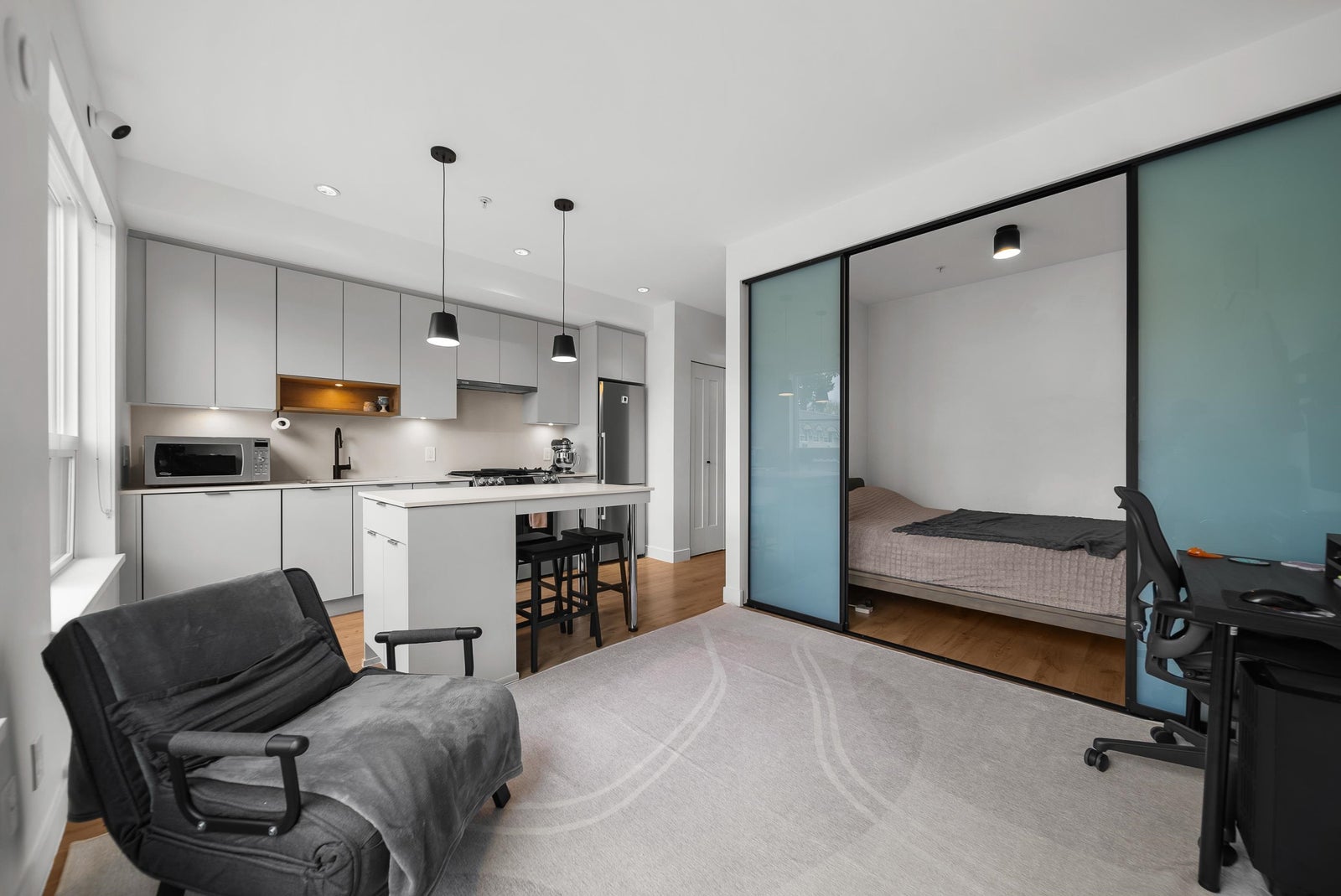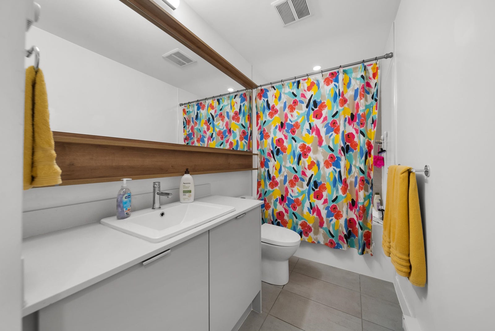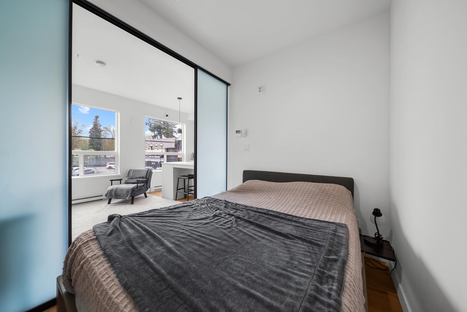 Welcome to Upper Montrose at 2493 Montrose Ave in historic downtown Abbotsford! This modern junior 1-bedroom features wide plank flooring, contemporary cabinetry, quartz countertops, and a premium appliance package with gas range. Functional layout with sliding glass wall for bedroom privacy, stunning 4-piece bath, barn door detail, and built-in split A/C. Includes in-suite laundry, storage, 1 underground parking stall, and storage locker. Enjoy a vibrant, walkable lifestyle just steps to Old Yale Brewing, cafes, boutiques, restaurants, and the farmers market. Building offers courtyard and playground area. Easy access to Hwy 1 and UFV. Open house May 2 1-3pm